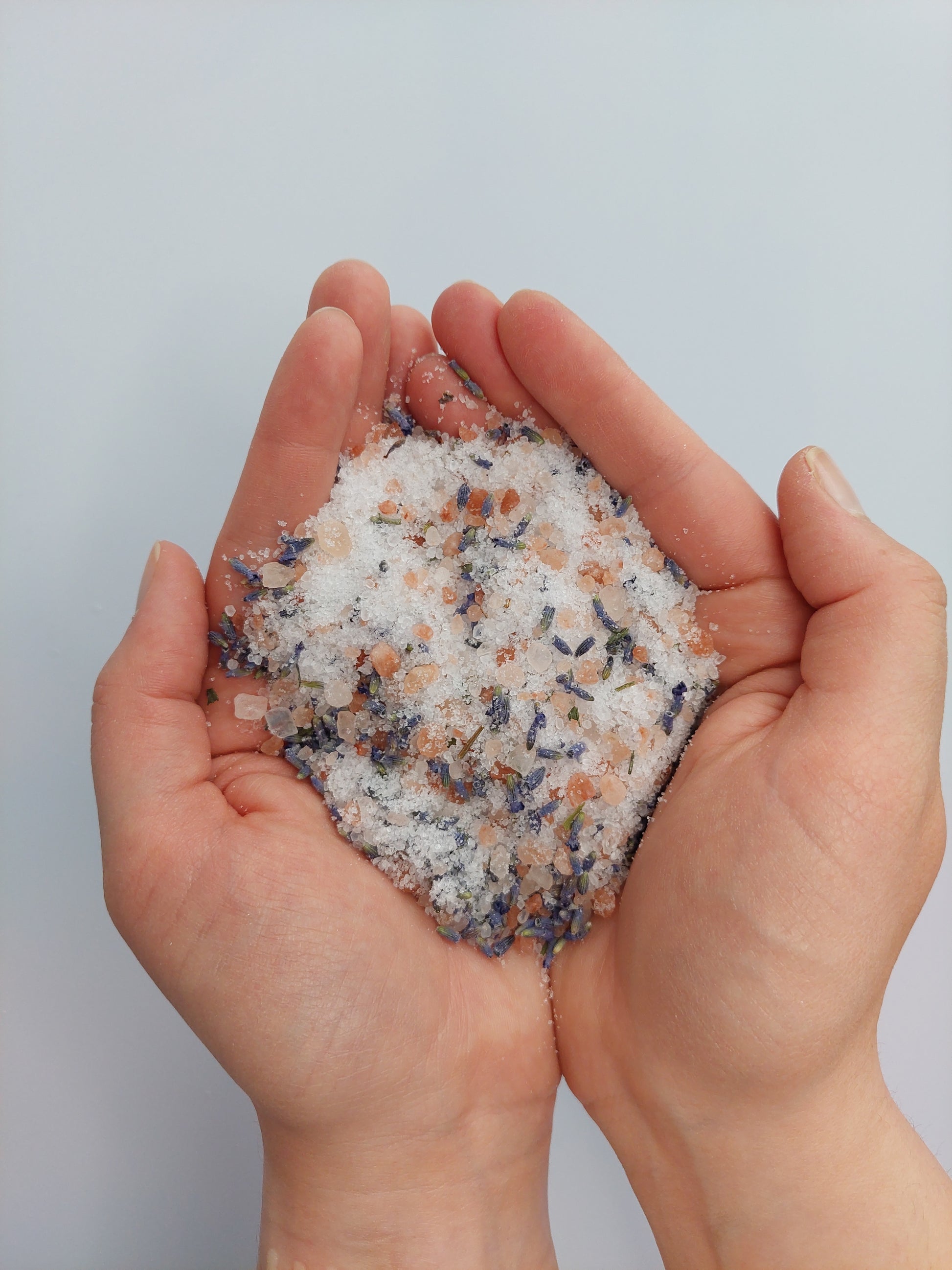 INGREDIENTS: Epsom Salts, Himalayan Salts, Lavender Flowers, Essential Oils (Lavender, Ylang Ylang & Roman Chamomile).